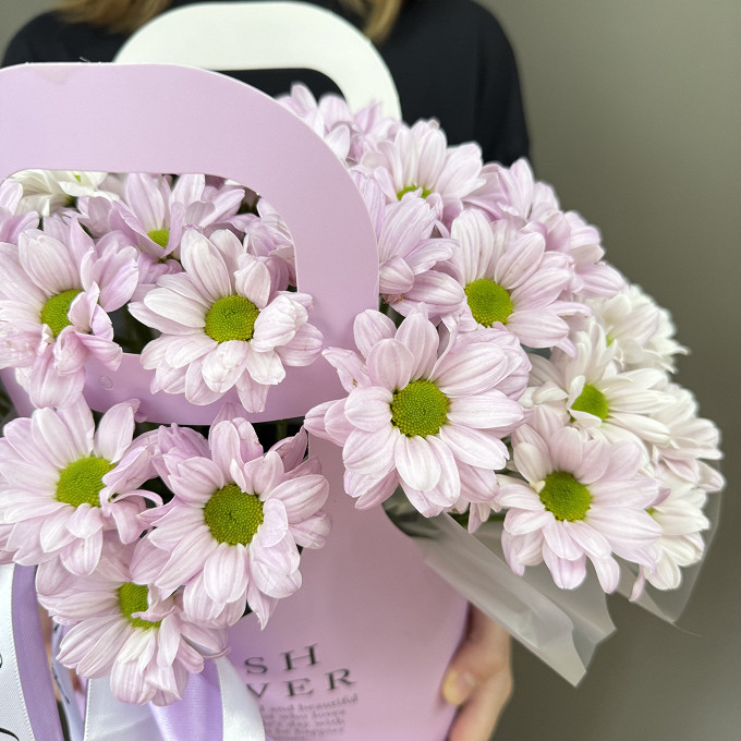 Коробка, Лента, Пиафлор / оазис/ флор. губка, Хризантема кустовая Бакарди